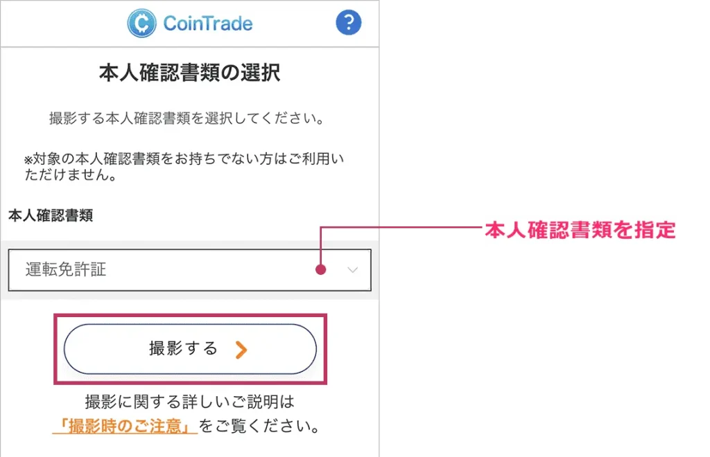 「運転免許証」もしくは「マイナンバーカード」を準備して、本人確認書類を撮影します。