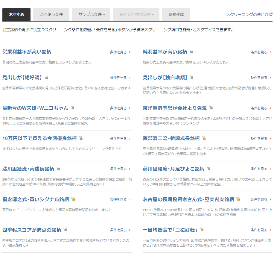 四季報オンラインは株探プレミアムよりもスクリーニングが優秀です。